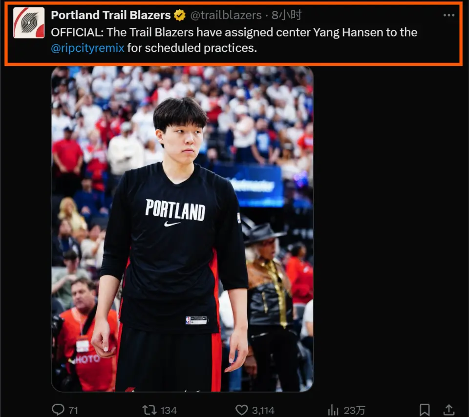 然而,开拓者俱乐部方面似乎有着完全不同的考量,杨瀚森下放8小时后,据开拓者随队记者西恩海金透露了更多细节,队记Victor Sun补充了这次下放的内容,他写道:“开拓者周末一般是没有球队训练的,Remix混音队这些天在开拓者训练馆举办新赛季训练营,瀚森去参加的就是这个,相当于是周末额外的训练。”显然,球队此举的根本目的,是让杨瀚森在赛季初期获得更多、更系统的训练时间。海金同时透露,杨瀚森并不会在发展联盟久留,他预计将在周一与湖人的比赛中重返球队阵容。球迷悬着的心终于可以放下来了。不过另一位队记丹尼马朗则提供了更深入的战术背景:随着中锋罗威的伤愈回归,开拓者目前正热衷于使用“五小阵容”作为球队的致胜法宝。在这一体系下,杨瀚森的定位更像是球队的“第四中锋”,其在NBA赛场的出场时间本就寥寥无几。马朗预测,如果杨瀚森在主队的出场时间持续受限,那么他本赛季将在两支球队之间频繁往返。显然,开拓者管理层为杨瀚森设定的首年目标并非即战力,而是适应与舒适。